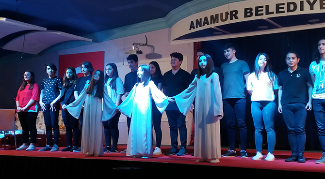 Anamur Özel Uğur Okulları'nda eğitim gören ögrenciler, sergiledikleri tiyatro oyunu...