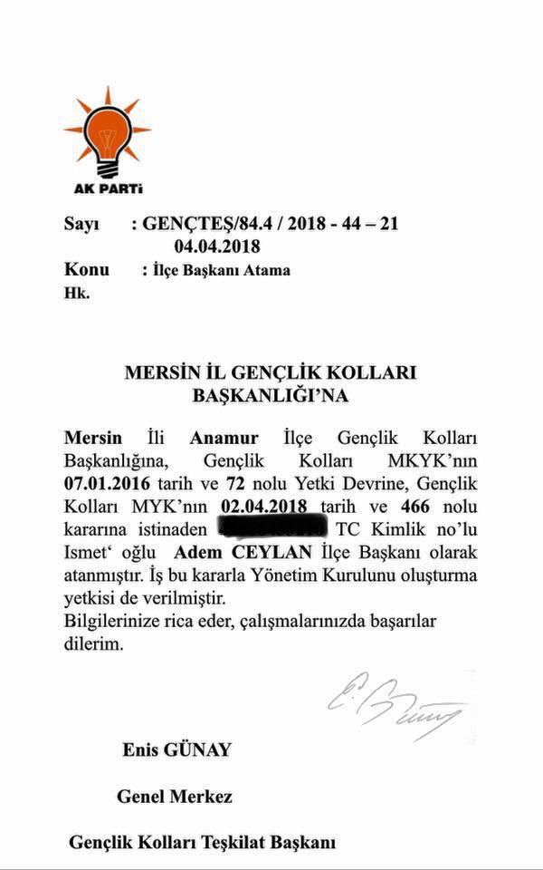 AKParti Gençlik Kolları Genel Merkezi Merkez Karar Yürütme Kurulu'nun 466'lu kararı ...